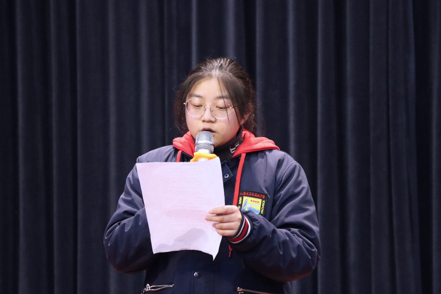 紧接着,主持人指出作为青少年的我们,应当立足现实,心怀报国之志,并邀请陈航同学带来演讲《祖国,我为您自豪》。热血演讲让同学们深深沉浸在其中。随后,潘杰坤、谭阳一、权俊闻、万俊皞、刘畅、吴梦瑶等几位同学继续为大家带来朗诵《写给我至亲的母亲》,真挚的眼神、铿锵的声音,使班会达到了高潮。