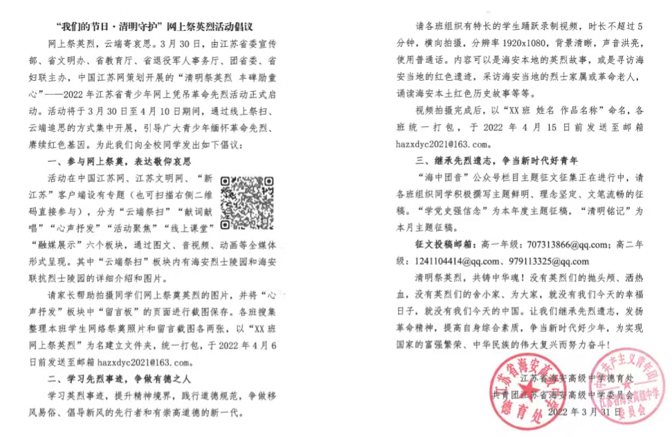 “清明祭英烈,云端寄哀思” ——我校组织网上凭吊革命先烈活动
