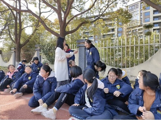 分享环节,心理老师请同学们席地而坐,了解大家活动中的真实感受。