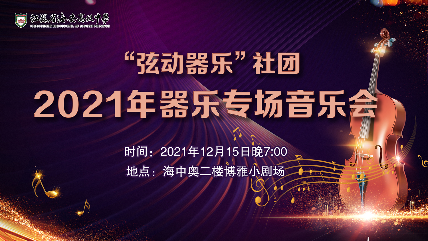 12月15日晚7点,海安中学在奥林匹克楼二楼博雅小剧场举行2021年器乐专场音乐会。参加音乐会演奏的同学全部来自于我校弦动器乐社和民乐团,前来观看演出的有学校领导、市文艺界专家、爱好音乐的老师和同学。