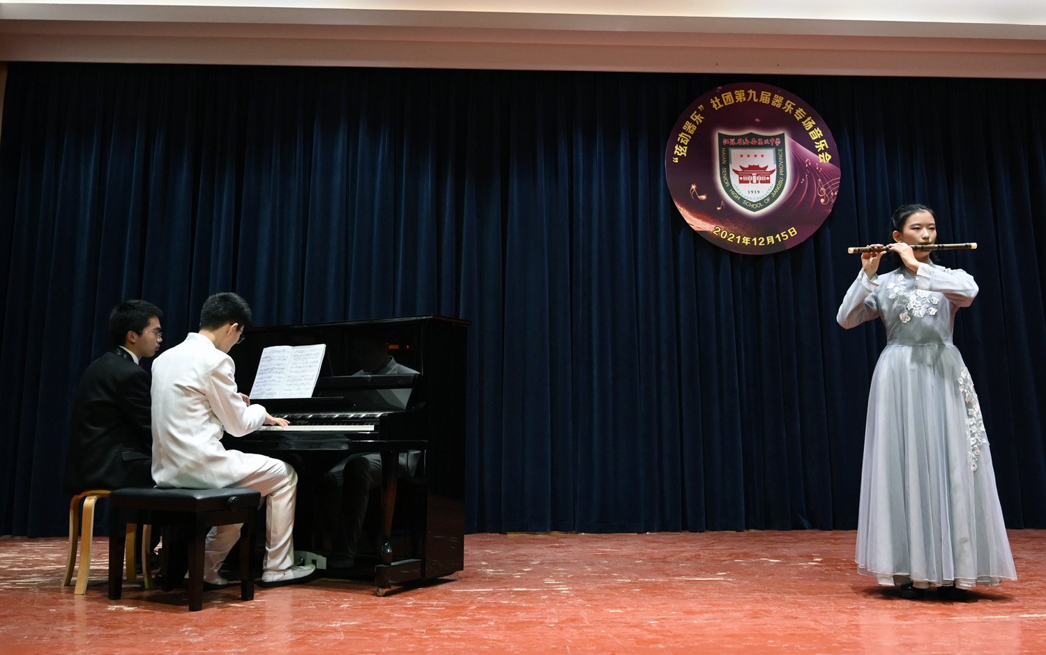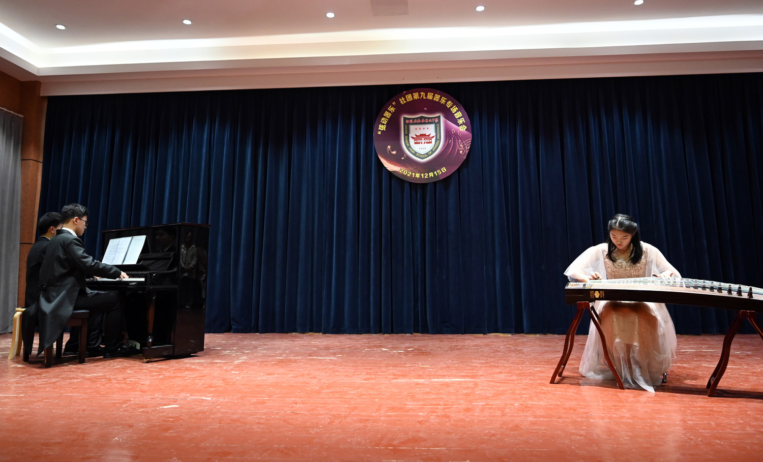 将近两个小时的演出,同学们呈现了极具艺术性和技术性的表演。丝竹声如凤鸣鹤唳,琴弦响似泉流钟鸣,民乐经典和西洋古典交相辉映。丝弦五重奏《欢乐的夜晚》热烈而奔放,琵琶曲《十面埋伏》悲壮而激昂,钢琴四手联弹《军队进行曲》配合默契,欢乐而华丽,最后的民乐合奏《步步高》带来一片明快祥和,引得观众席掌声雷动,不绝如潮。